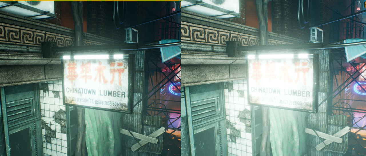 In the Alley scene, I have volumetric fog. For that, we need to place Exponential Height Fog into our scene first. Then we need to check “Volumetric Fog” to enable it. We can see the difference just by playing with that setting. Disabled on first image and enabled on second image.