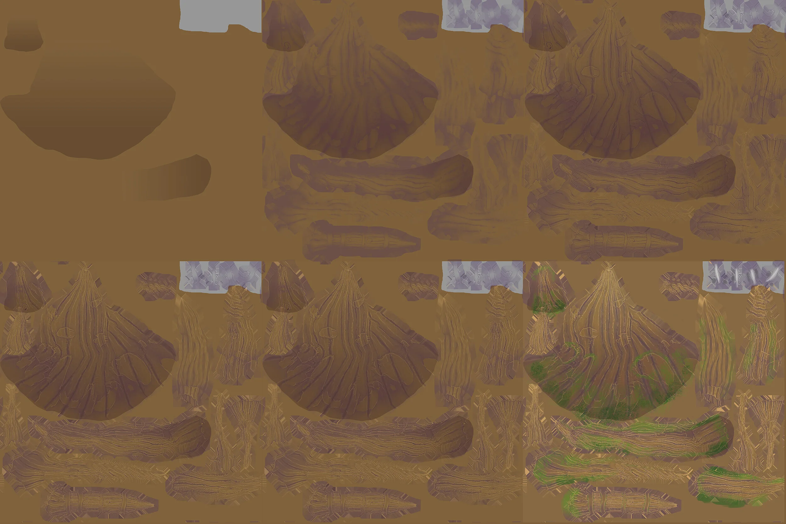 Some props were newer to me than others. For example, trees in this style was a new experience and I was trying to find a good quick way to create the trees knowing that the scene had a great amount of them. Starting out with the main tree gave me a good workflow to apply on the other trees and then I did not need the same detail being not in the center of the scene.