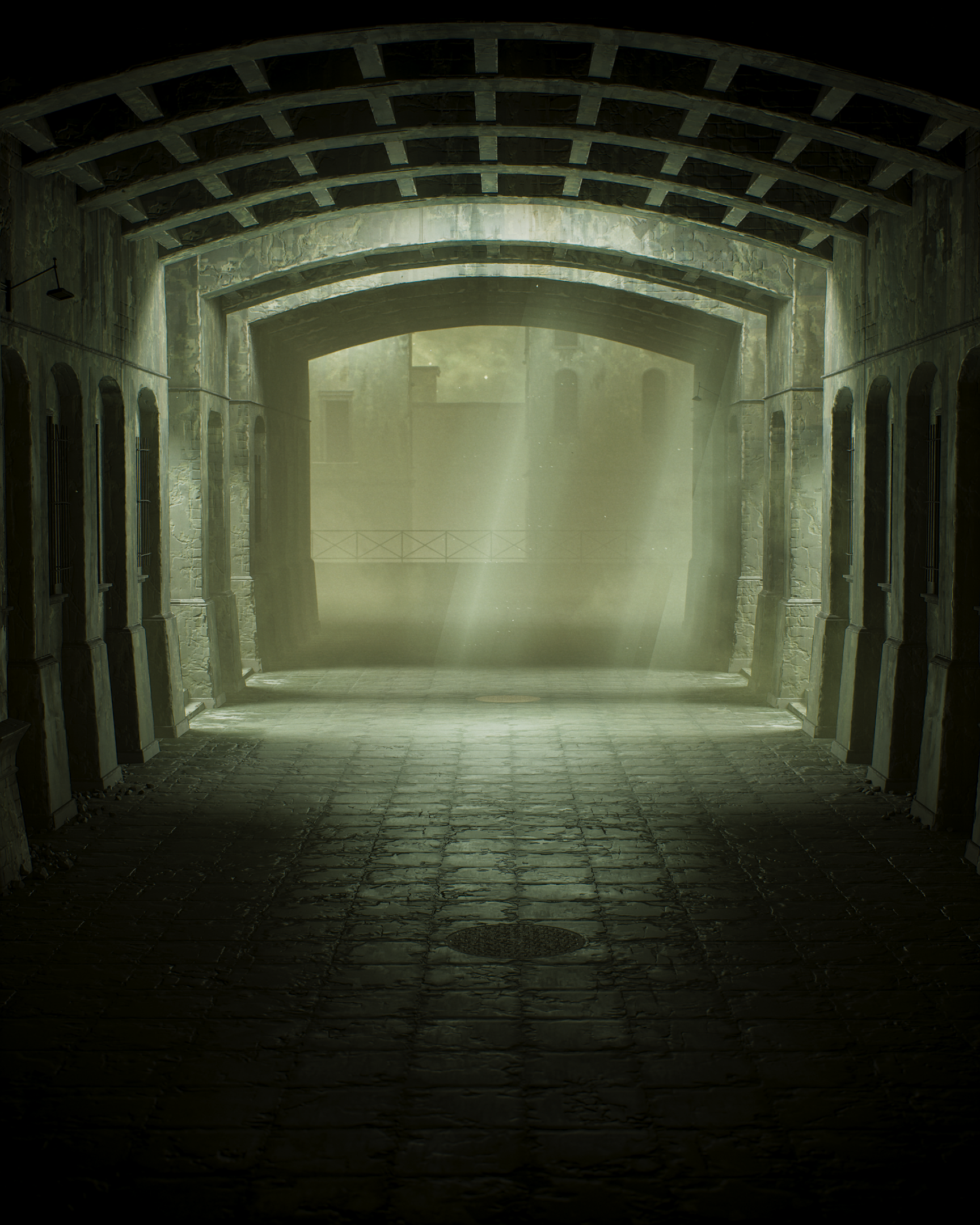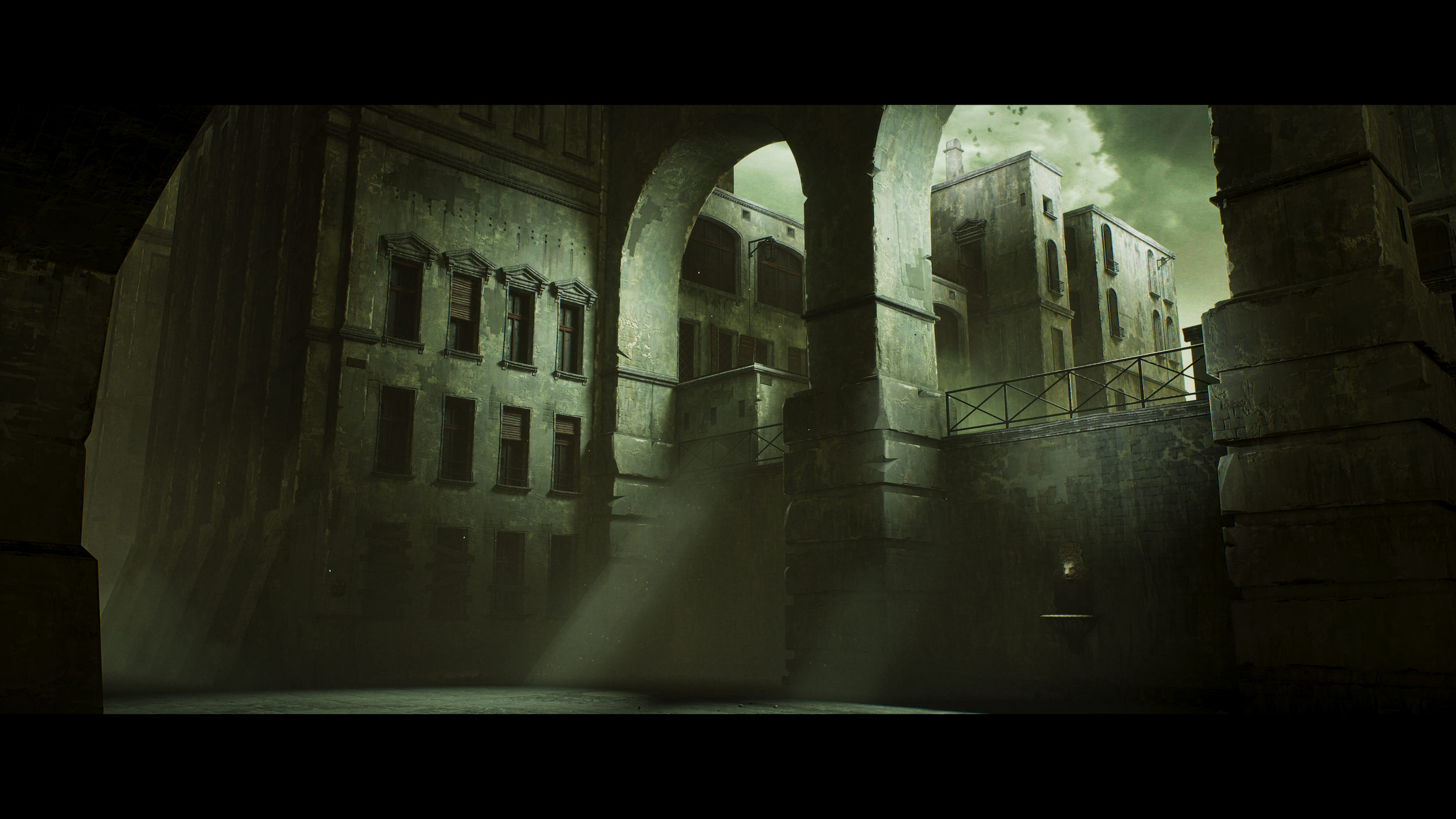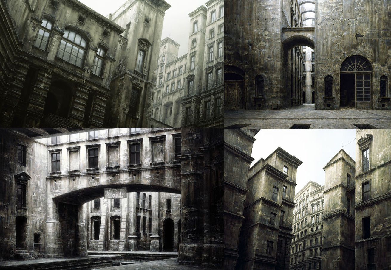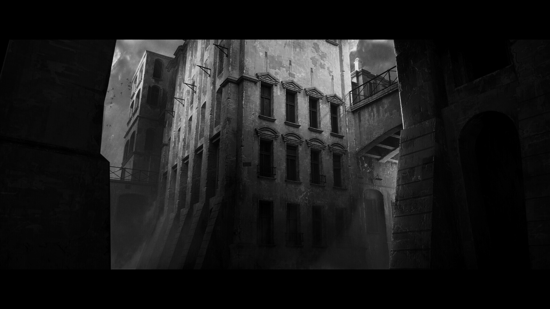 One of the first guidelines was a gradient on the buildings, which we can see especially in the grey picture but I wanted the base of my lighting to accentuate the height. This really is soaking us in this heavy atmosphere as we travel through those areas.