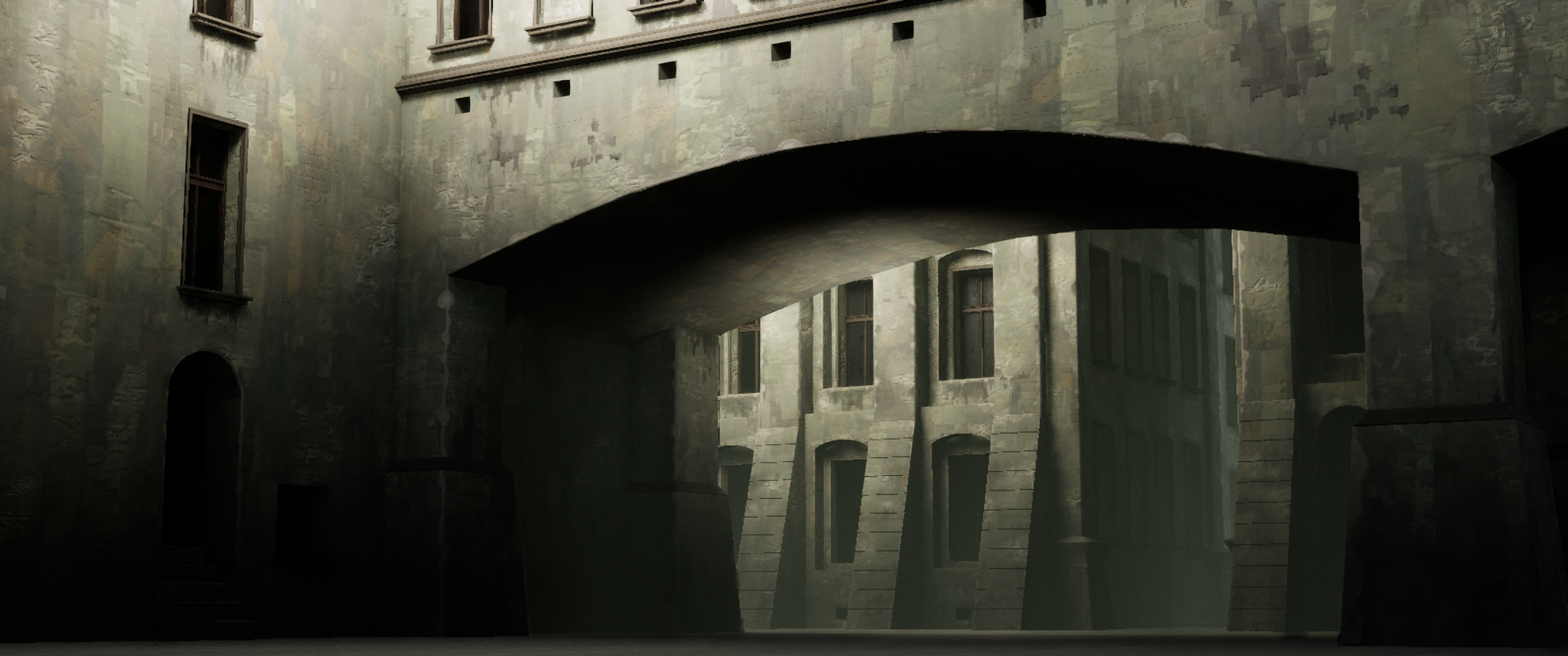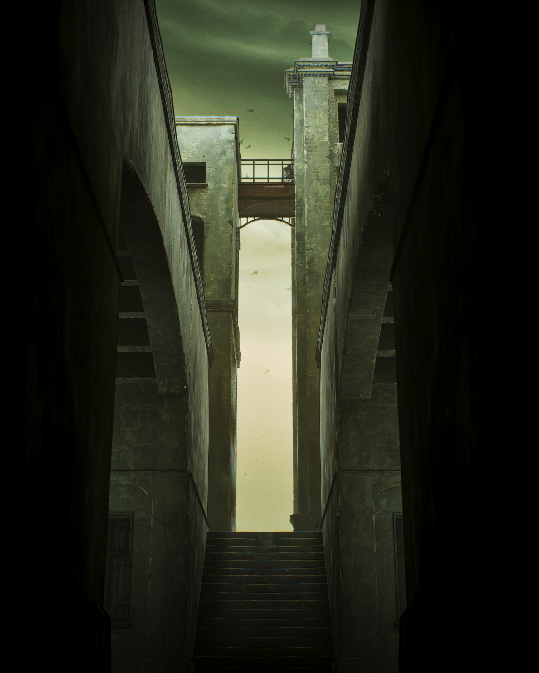 Stefan Hoenerloh's work has a distressing, captivating, and timeless quality. The repetitiveness of the shapes and materials fascinated me. How did he manage to make this homogeneous ensemble convey an emotion? Why do I want to keep looking for the small crack in the wall? When did the civilization that built these walls stop? Are there still people hiding there? That's what interested me, the fact that with simple architectural elements and a striking setting, one could imagine a whole lore behind the painting!