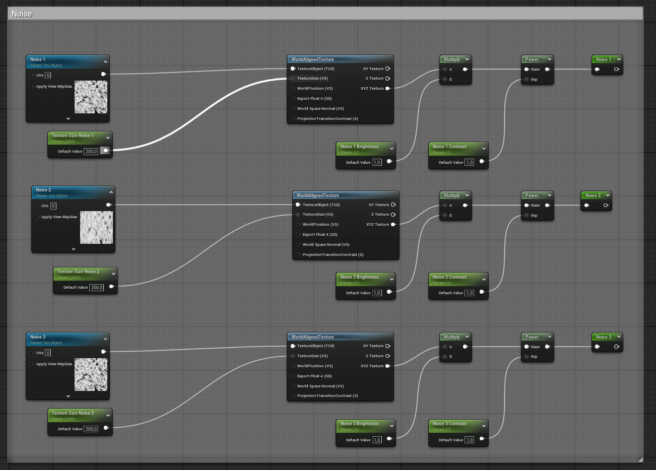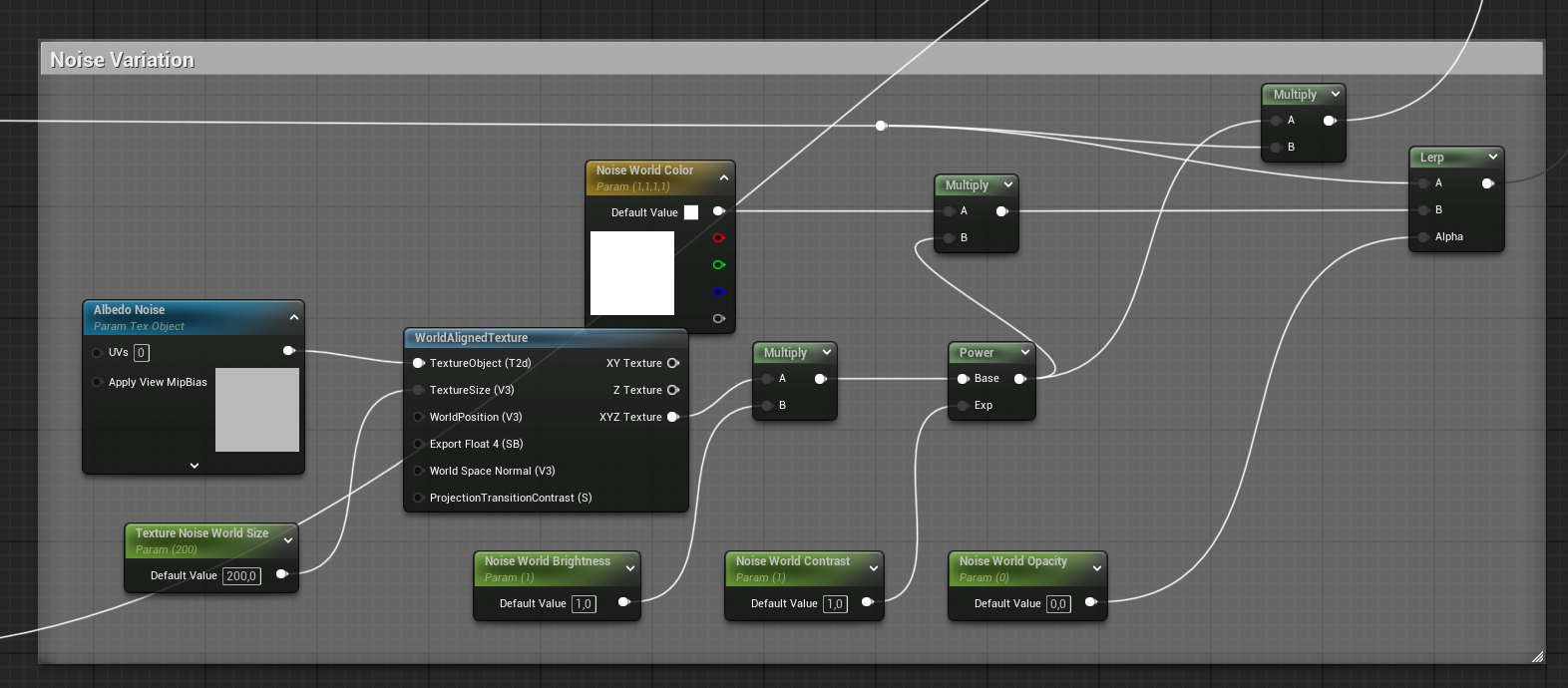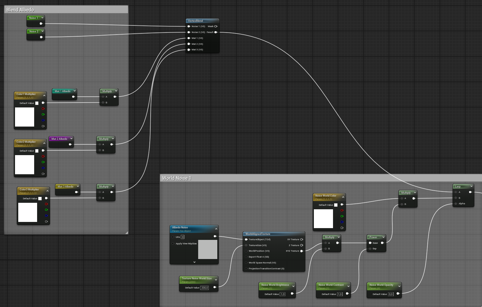 After that, I added my worlds noises (world noise 1 and 2 work the same way), which only impact the base colour to give it that little extra touch.
