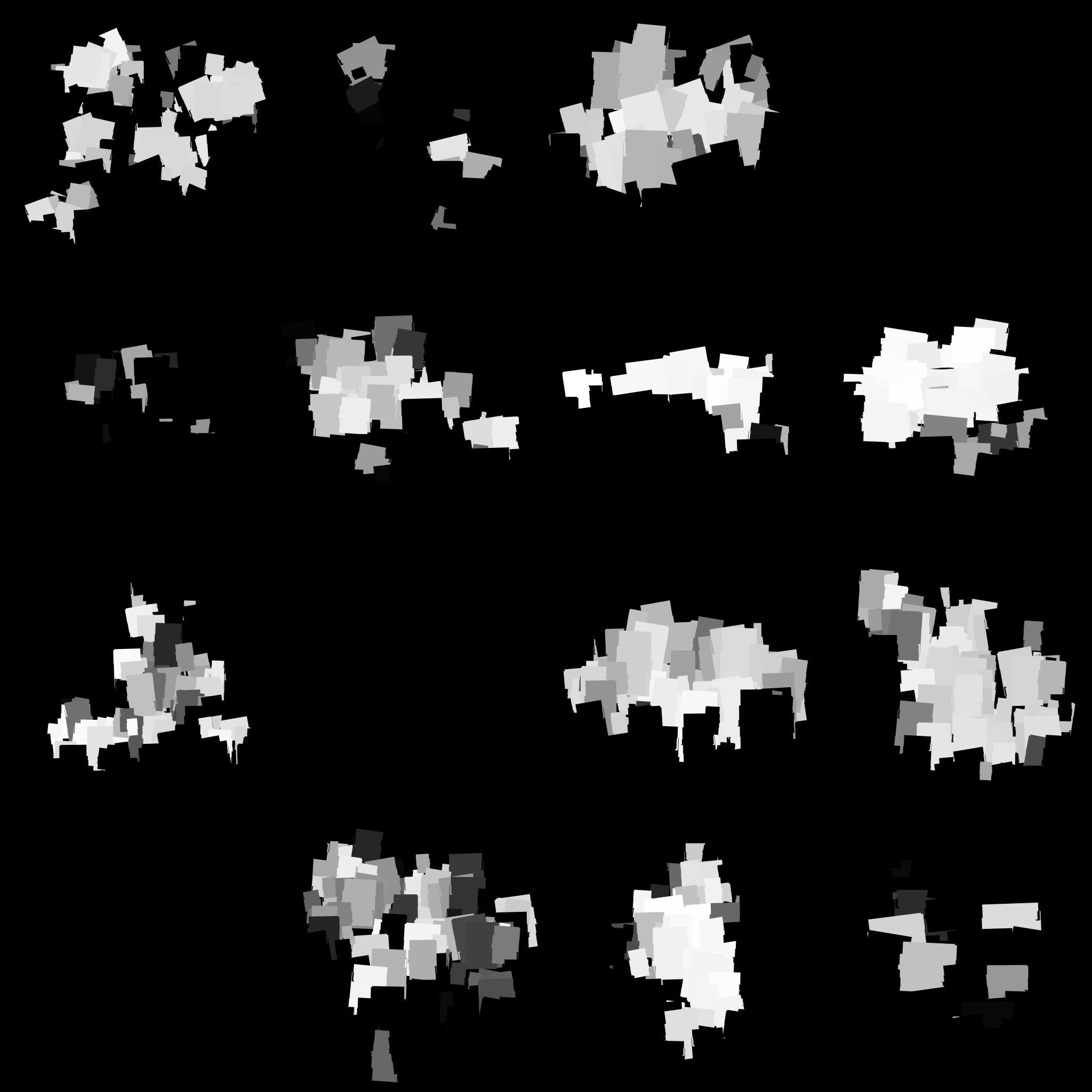 There are gaps in the atlas, which is intentional, as I used the same system from the edge decals. When you move the buildings, the decals change. Same buildings, different results. As with the gap in the atlas, sometimes there's a decal, sometimes not.